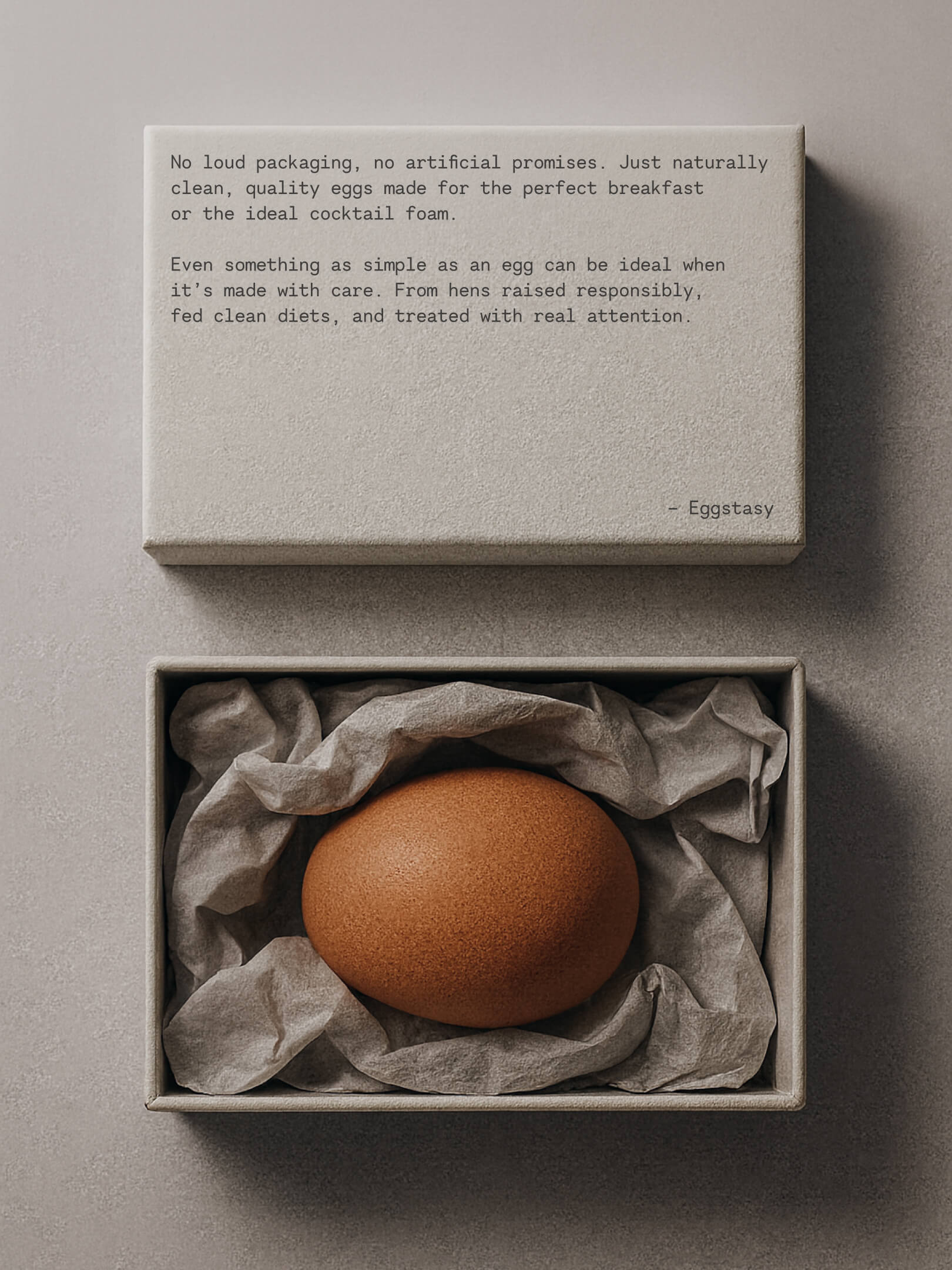 This is a direction we explored for Eggstasy: a brand built on honesty, subtle beauty, and a calm visual language. No artificial hype. No heavy messaging. Just a simple product shown through thoughtful design