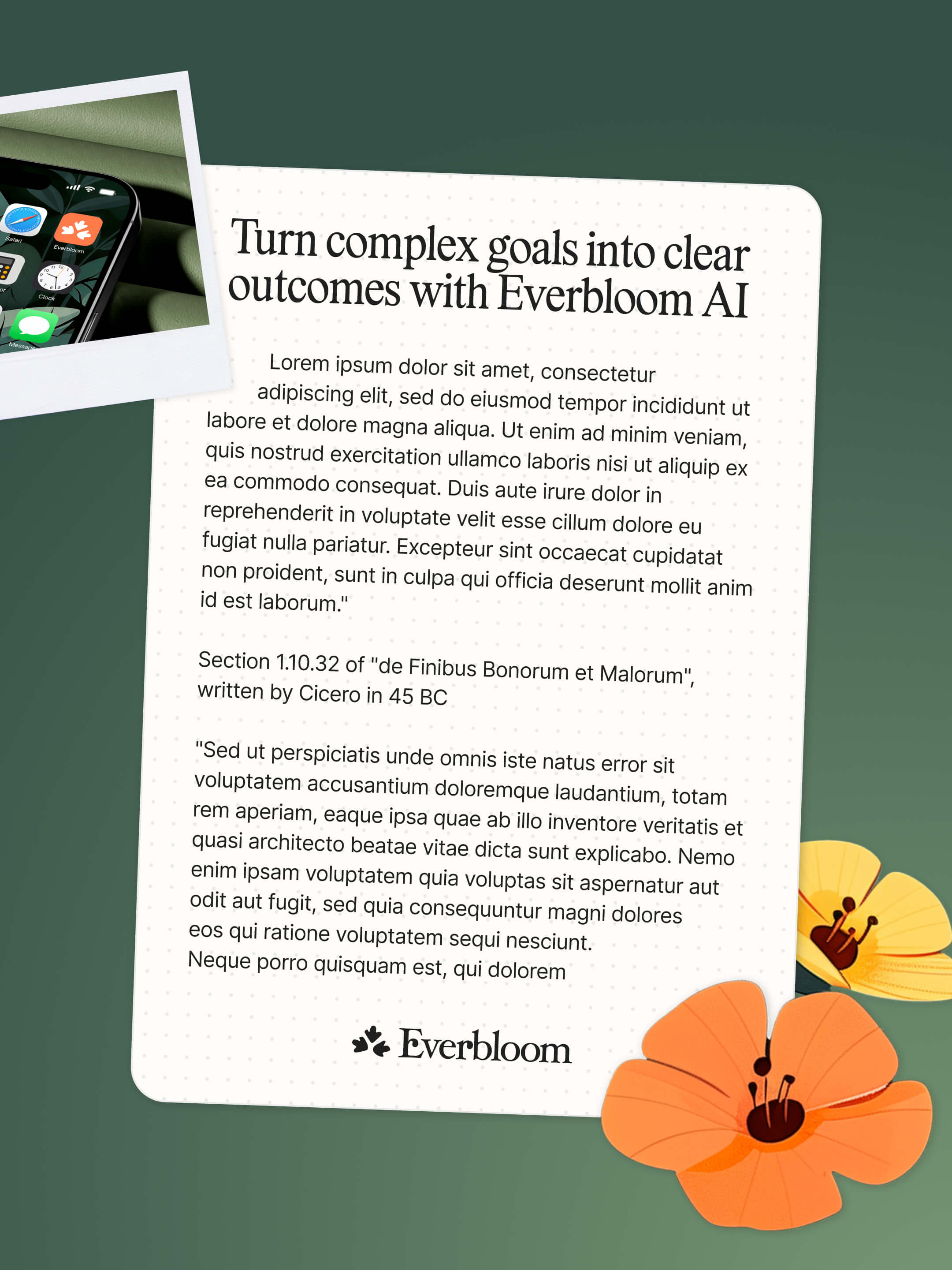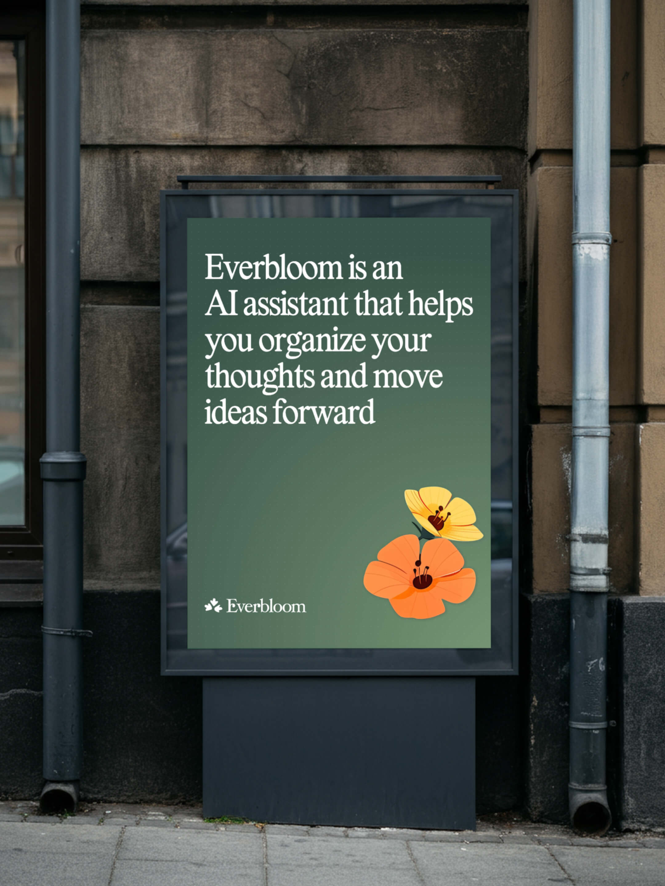 The brand concept is built around the idea of growth. Most ideas don’t fail because they’re bad, they stall because the work around them becomes overwhelming. Everbloom removes that friction so ideas can move forward and turn into real outcomes.