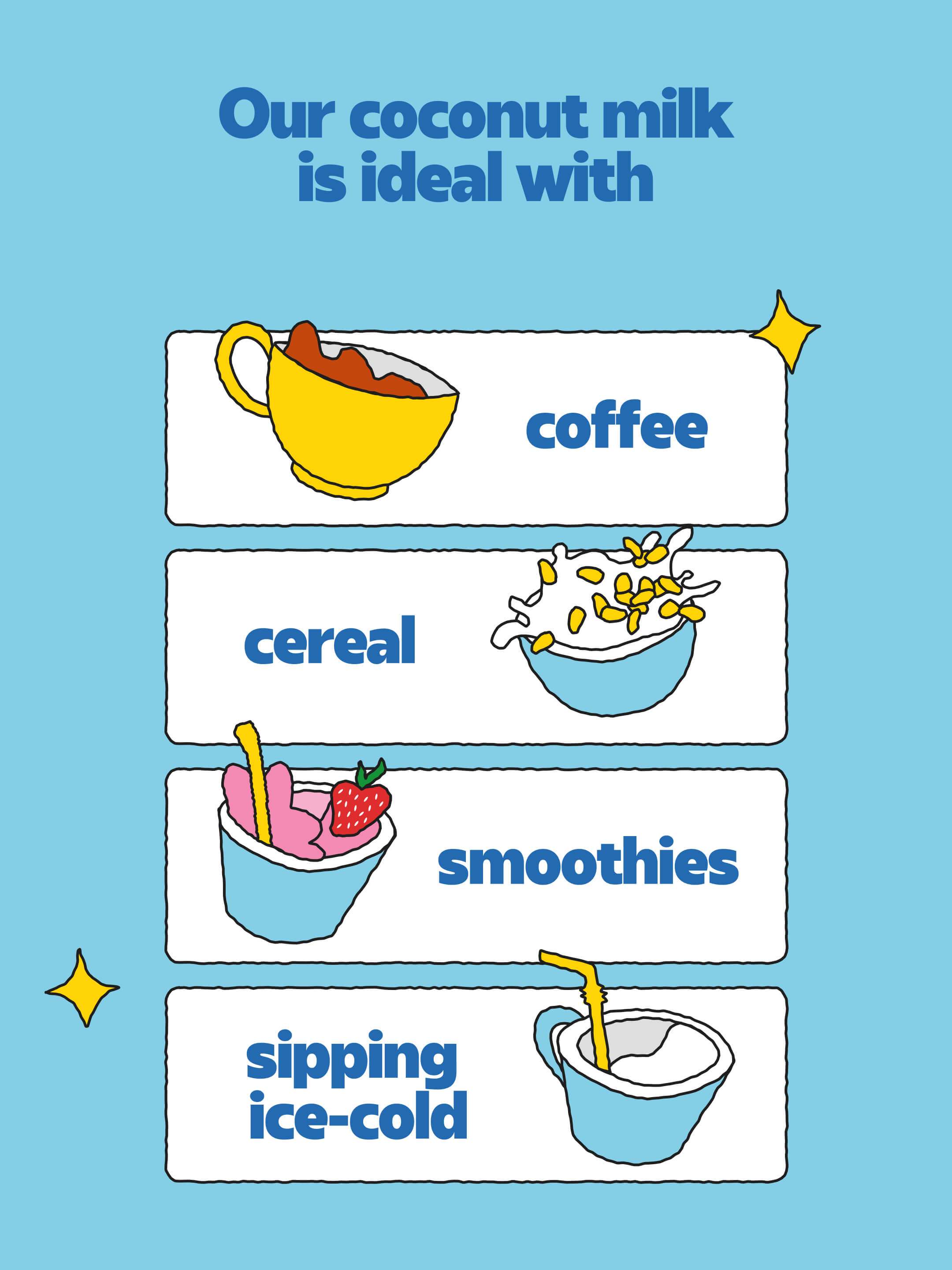 Loved for being different-ish. Brand doesn’t try to be “real milk”, they simply taste good in our own way. Honest ingredients, gentle flavor, and a soft, friendly mood in every sip.
